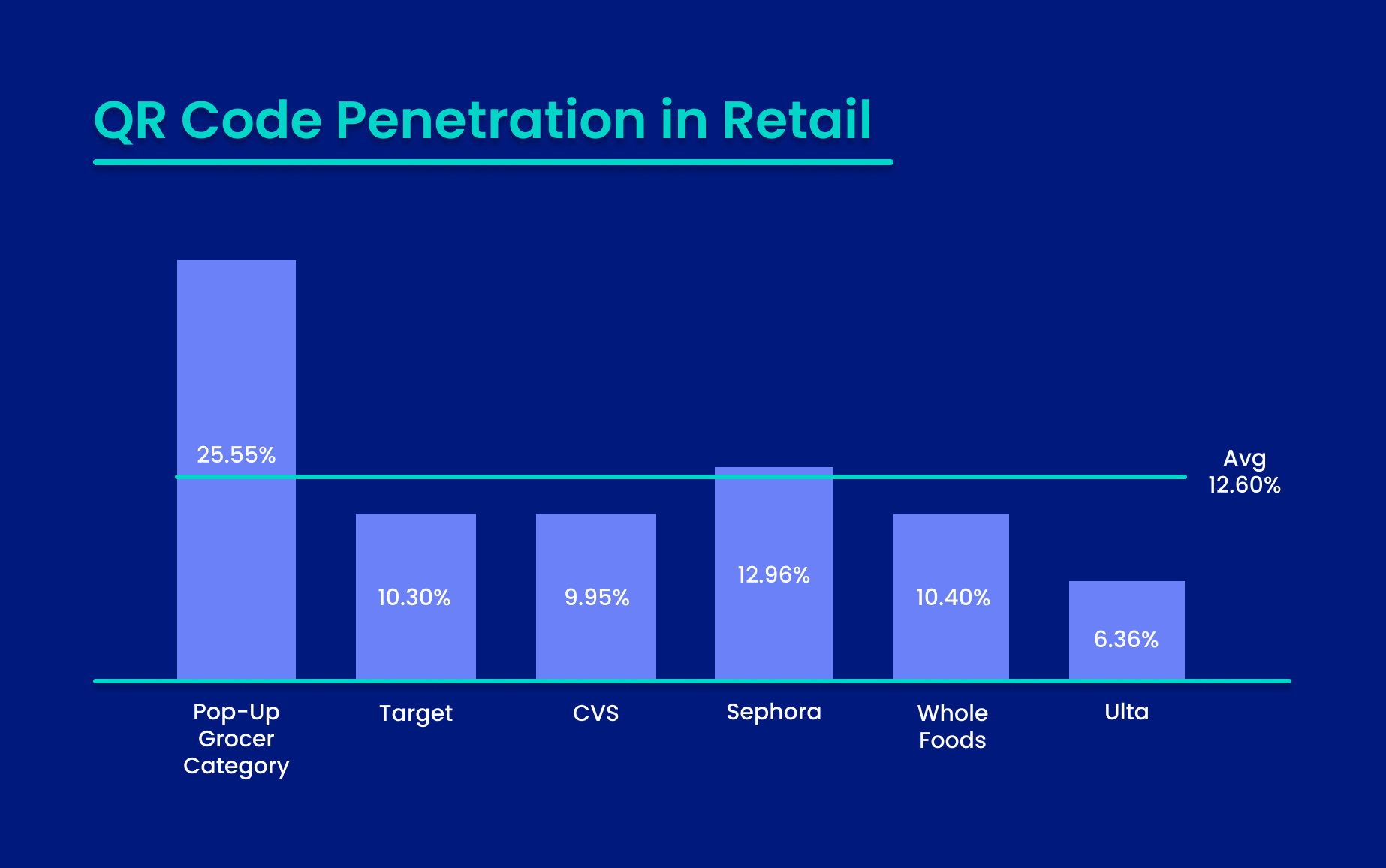 - A field study across seven major U.S. retailers reviewed 2,815 brands and found average in-store QR code penetration of 12.6%, indicating limited current adoption on product packaging.