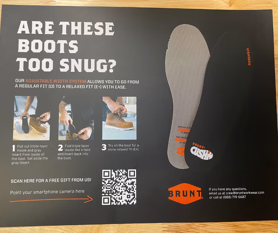 When scaling into wholesale distributors (over 110 shoe retailers nationwide), Brunt Workwear risked losing the direct connection to consumers that made them successful in DTC. Using Brij, Brunt embedded QR codes on their packaging. When a customer buys a pair of boots in a retail store, they scan the code, upload their receipt, and enter their email to receive a free sticker pack.