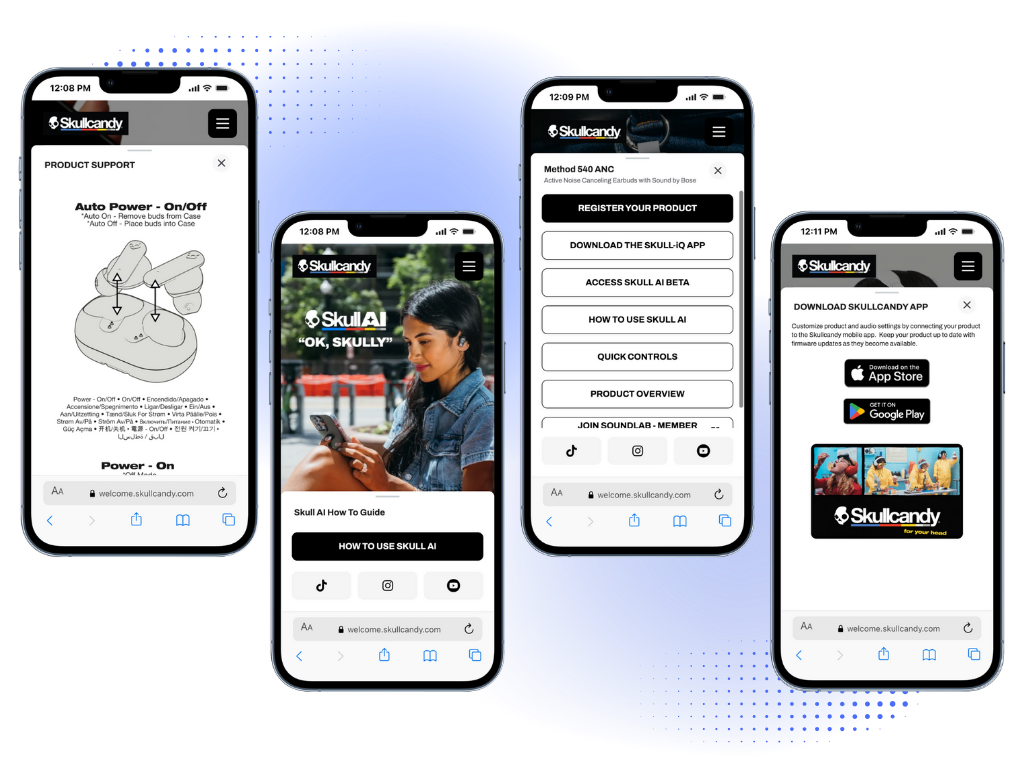 Skullcandy uses Brij to offer interactive product education, such as usage guides, videos, and product feature overviews to help customers get the most out of their Skullcandy gear.