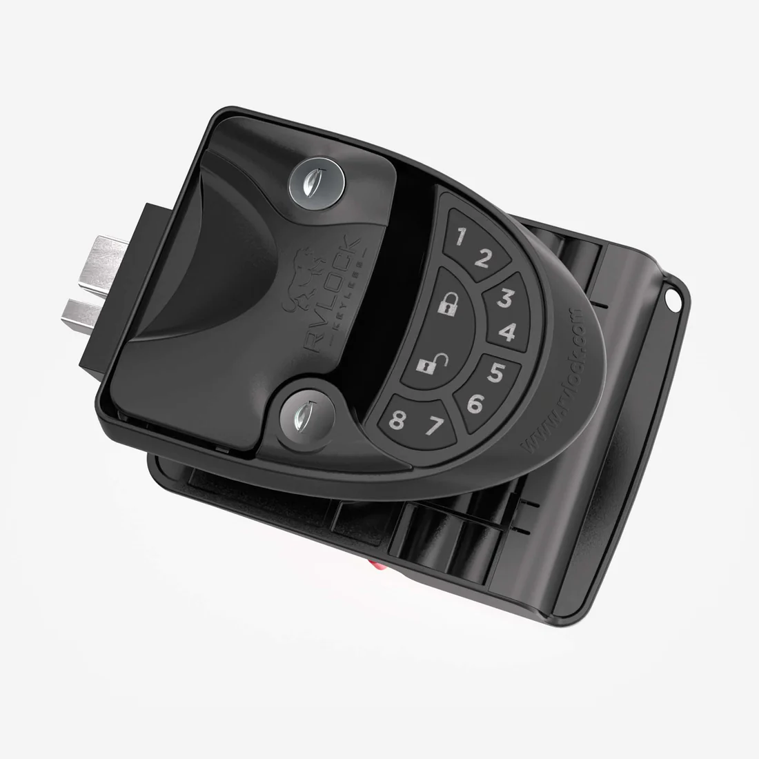 The RVLock V4 is back and better than ever with a durable full metal construction, weatherproof backlit keypad, key alike capabilities that let the user control multiple doors with a single fob. We also like the sleek water drop design and ergonomic grip — just make sure the RV doors have hinges on the right.