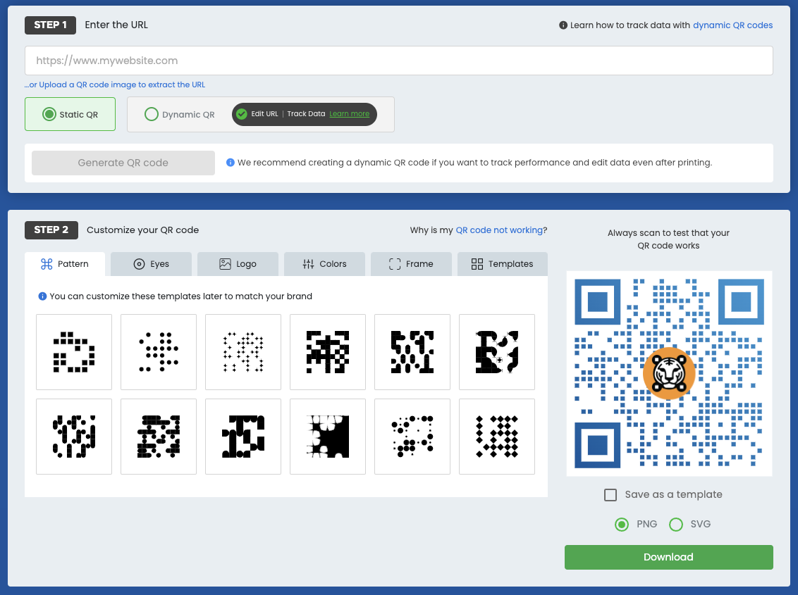 - Generate Static QR codes for free and dynamic QR codes at a cost