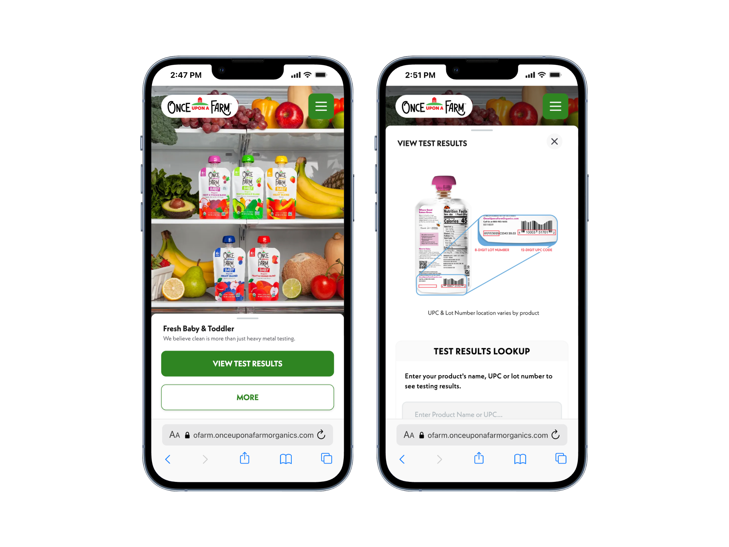 Once Upon a Farm uses Brij to power a fully customized transparency experience originally built for AB 899 – California's baby food testing regulation. The same infrastructure and workflows directly apply to SB 646 for prenatal supplements.