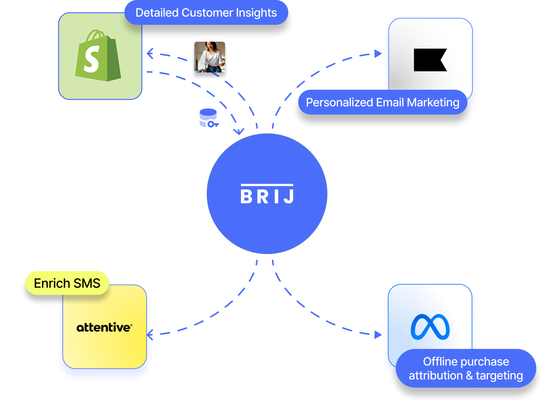 The first-party data captured through Brij does not live in a silo. Brij integrates seamlessly with Shopify, Klaviyo, and over 5,000 other marketing and ecommerce tools, automatically syncing customer profiles in real time.