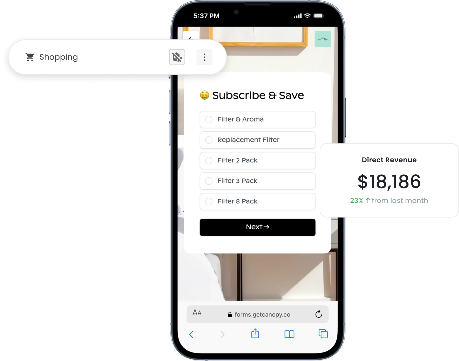 Allow customers to easily reorder products or opt in to subscriptions with a scan. With our Shopify checkout integration, orders automatically flow through the same channel as your website purchases.