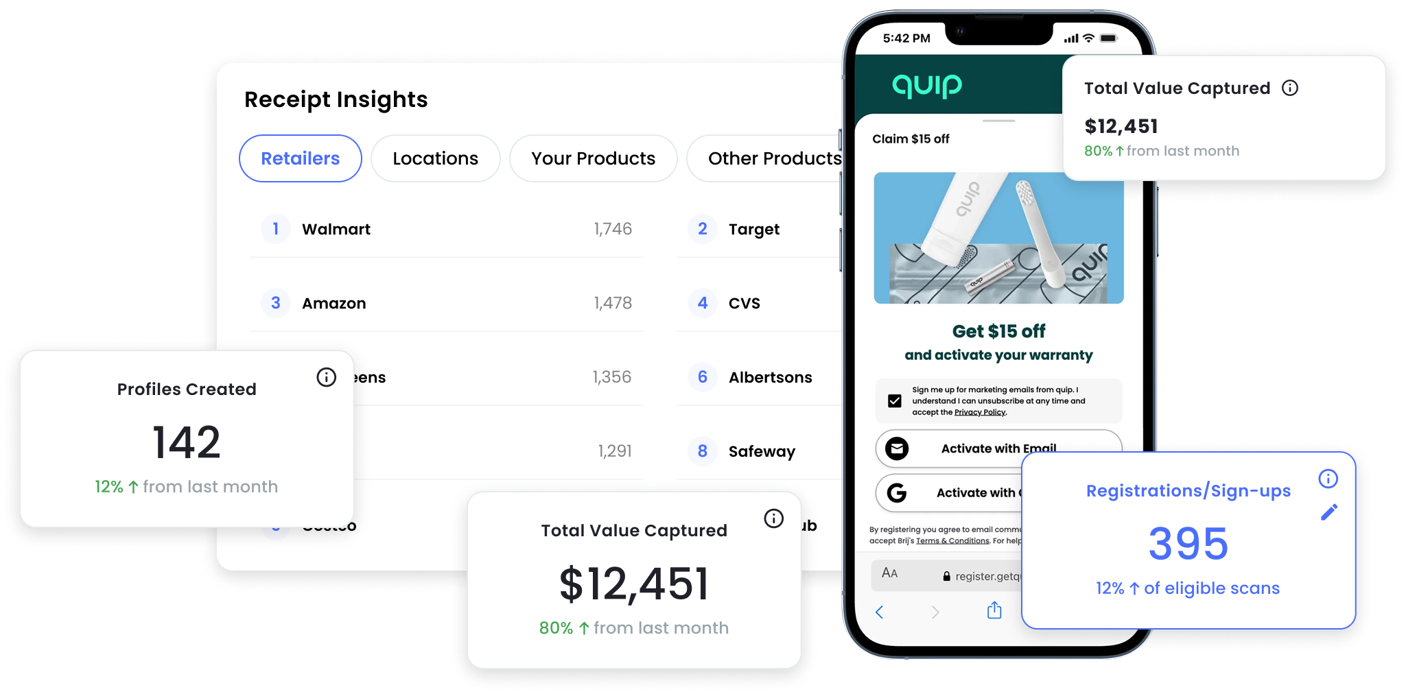 Brij syncs verified purchasers into your CRM, ESP, and ad platforms, powering replenishment flows, subscription nudges, and personalized routine guidance. Track LTV, refill cadence, and offer performance by SKU or cohort, and update education or promotions in real time with Smart Links, re-engaging customers based on actual usage and verified purchase behavior.