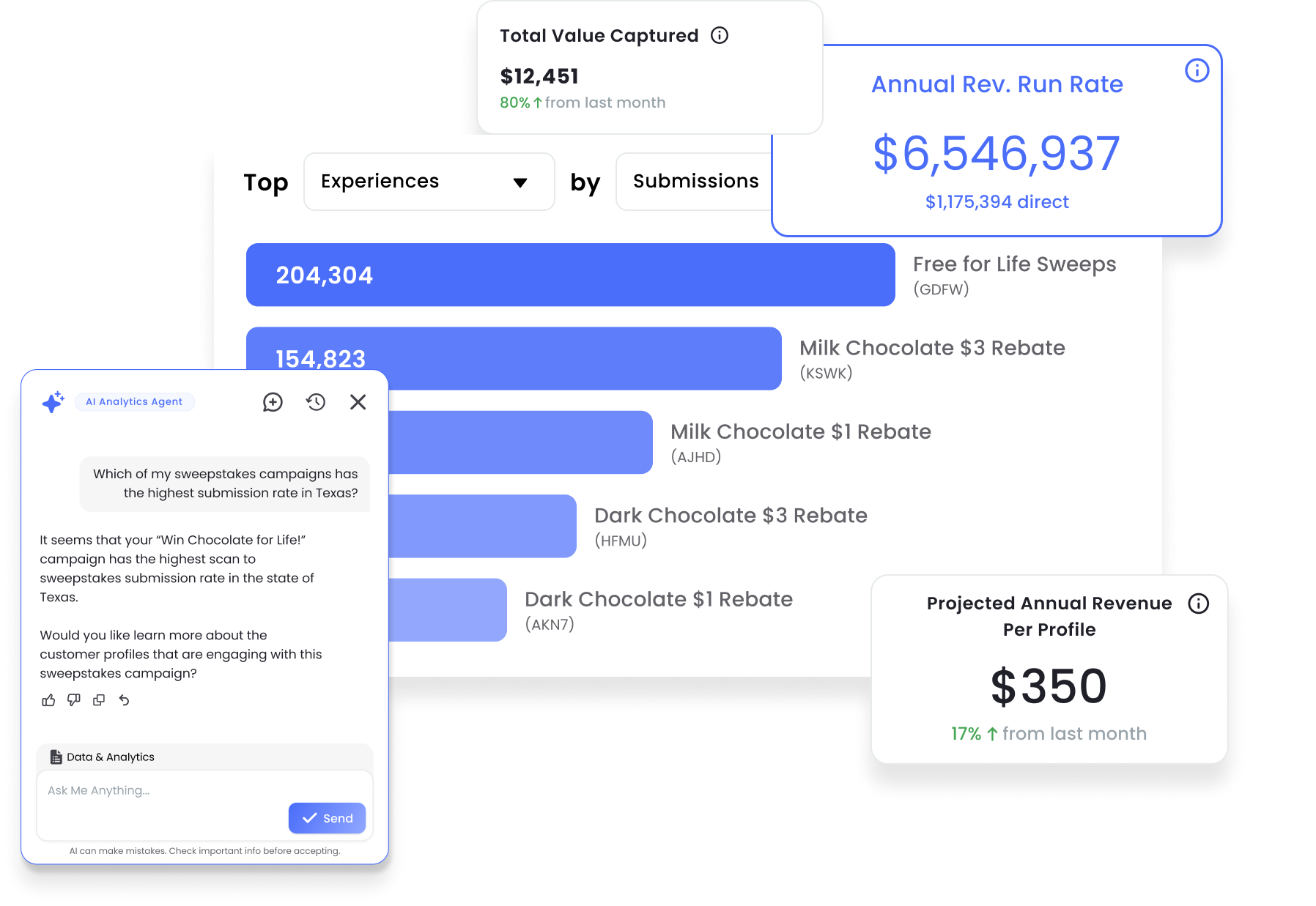 Evaluate incremental revenue, revenue per profile, revenue projections, and more. Brij shows you how each captured customer contributes to your bottom line both in-campaign and throughout the lifecycle.